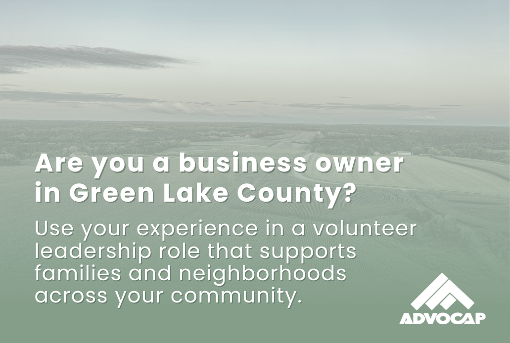 Founded in 1966, ADVOCAP is a nonprofit Community Action Agency (CAA) serving Fond du Lac, Green Lake, and Winnebago Counties in Wisconsin. ADVOCAP helps individuals and families achieve self-sufficiency through programs in housing stability, homeless assistance, food security, education, and business and workforce development. By partnering with local organizations and engaging volunteers, ADVOCAP strengthens communities while supporting our neighbors in building stable, independent lives.