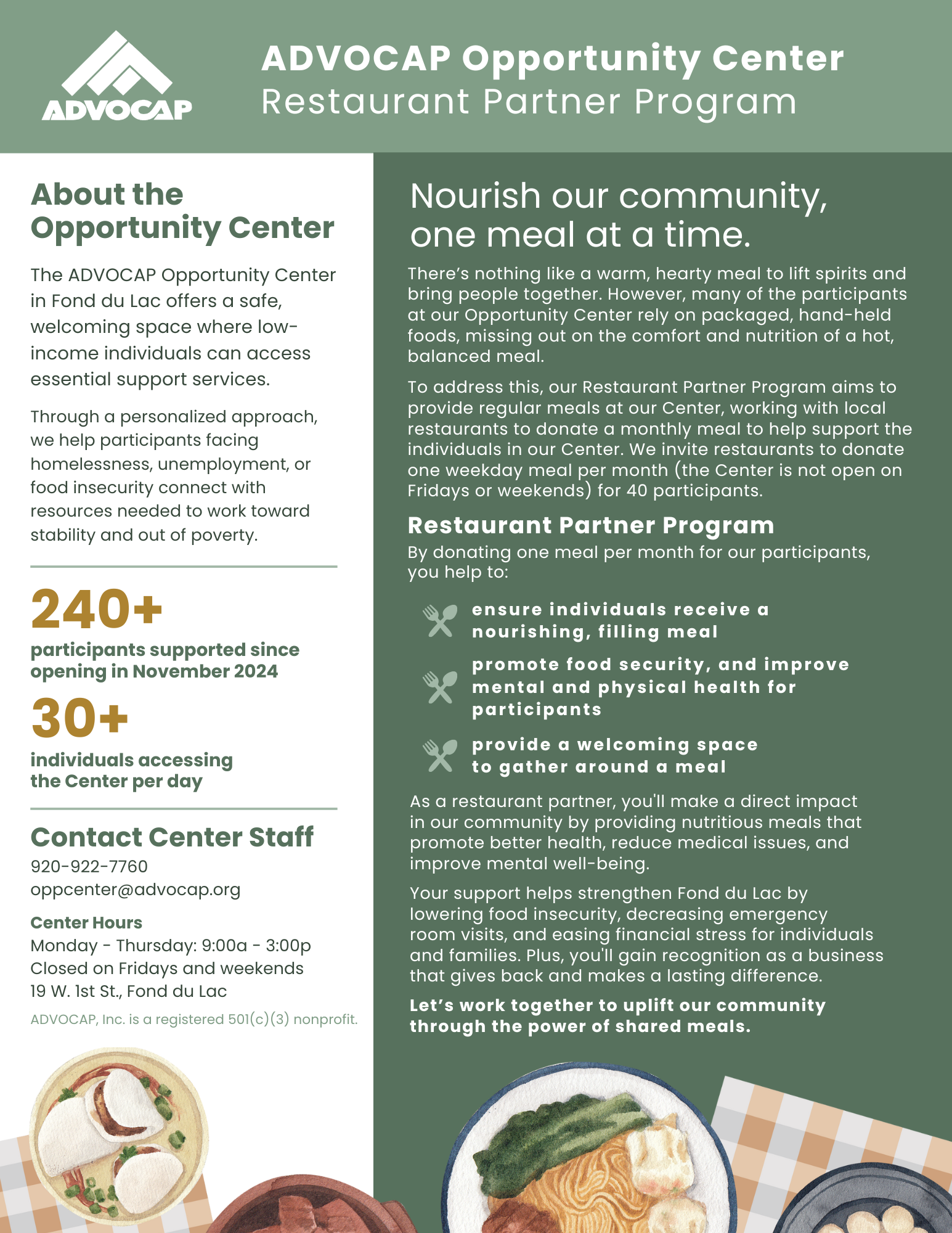 ADVOCAP Opportunity Center Seeking Restaurant Partners to Nourish Our Community